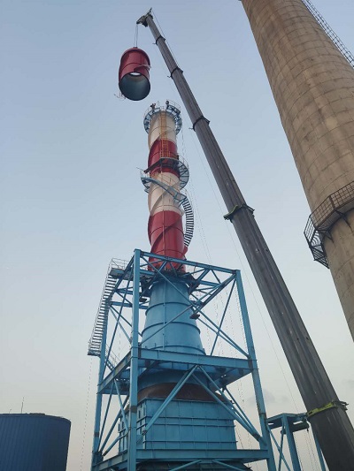 在湛江晨鸣业主大力支持以及公司各位领导、各位同事、现场所有施工人员的共同努力下,由我公司承建的湛江晨鸣3*280t/h循环流化床锅炉烟气超低排放改造项目,在准备充分、安全措施到位前提下,于2020年01月14日8:30—18:30用350吨吊车顺利将总高达到80m的2#湿式电除尘直排烟囱全部安装到位,这标志着湛江晨鸣3*280t/h循环流化床锅炉烟气超低排放改造项目2#湿式电除尘系统己全线贯通!湛江晨鸣建设单位对我公司这种吃苦、务实,能打硬仗、啃硬骨头的精神特提出了表扬。同时目前现场工程安全情况良好,无安全事故,处在受控状态;现场质量情况良好,无质量事故,处在受控状态。