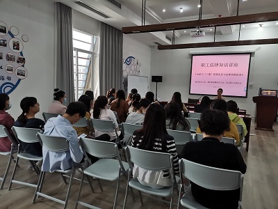 为进一步加强职工法律服务工作,营造和谐劳动关系氛围,提高职工法律意识和女职工保护意识,鼓楼区工会于10月20日下午举办课题为《女职工"三期"管理实务与法津风险防范》法律知识讲座,邀请厦门大学法律硕士,福建省人社厅法律顾问,福州市律师协会专业律师人才库成员林丹静女士主讲。金牛山园区约30家企业工会派代表参加了讲座。
